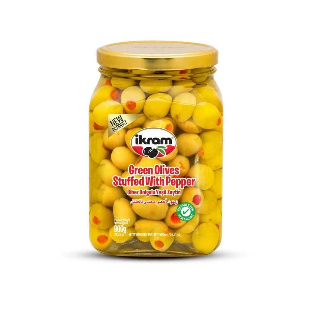Ikram Green Olives Pepper Jar 900GrX6