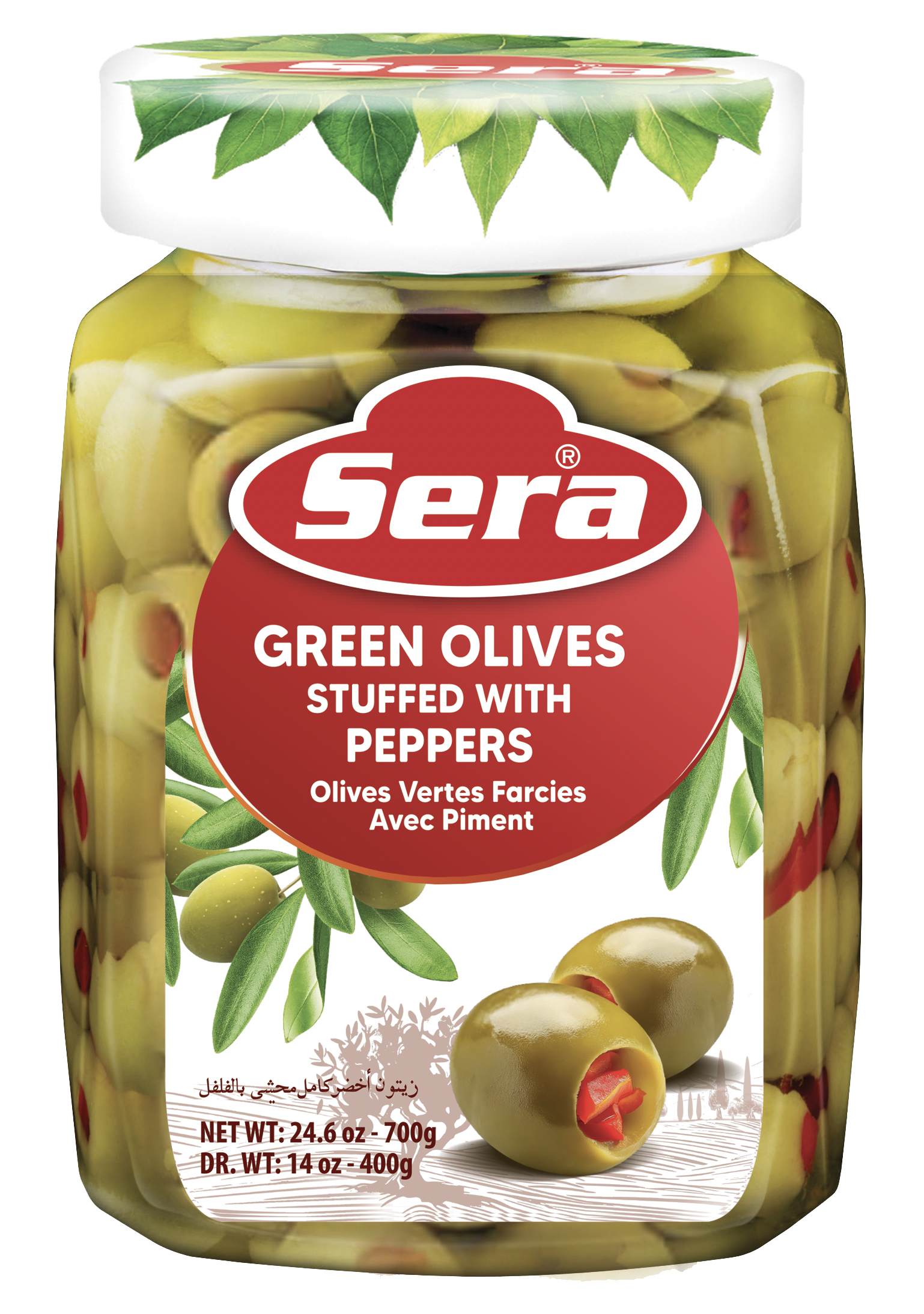 Sera Green Olives Stuffed W Pepper 12X750Ml